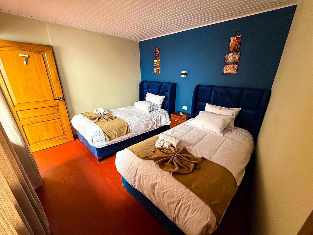 The Double Room at Andenes del Inca II offers a quiet and comfortable space with a beautiful panoramic view of the Ollantaytambo surroundings. It’s perfect for friends, family members, or travelers who prefer separate beds while enjoying a cozy stay near the main attractions of the town.