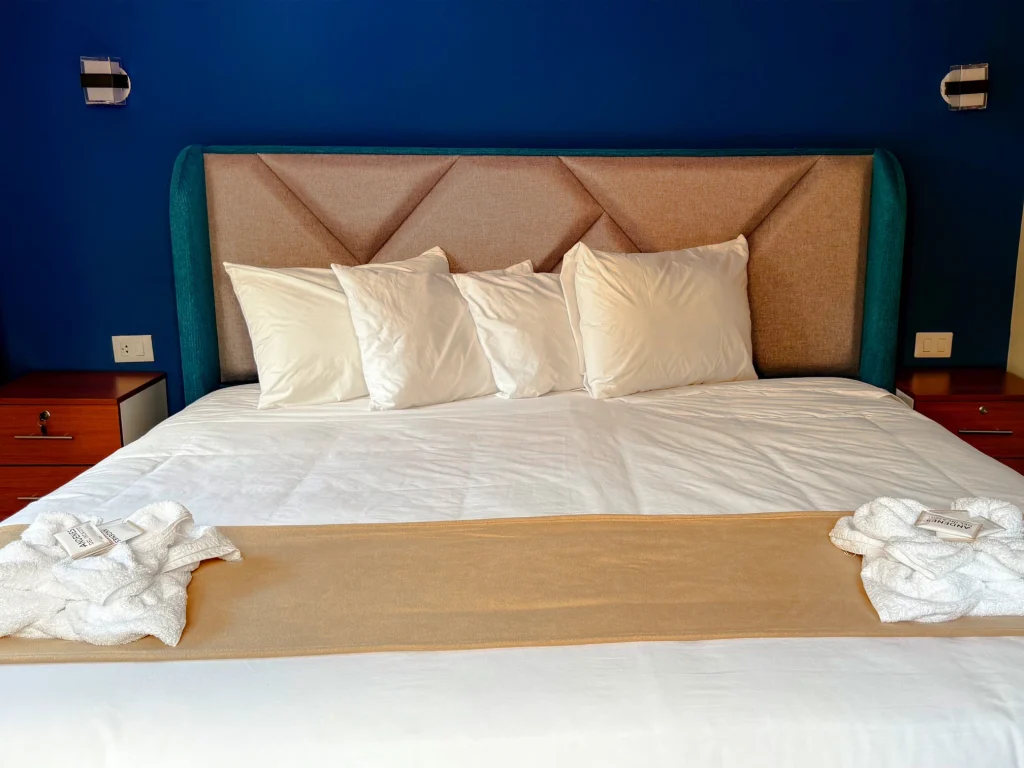 • Cama: 1 cama KING Size – espaciosa con sábanas de primera calidad para máxima comodidad.