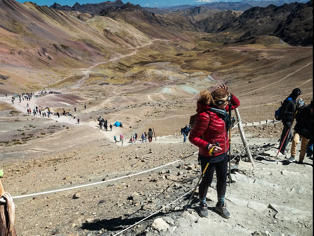 After our meal we will join back the trek, this time our goal will be the Rainbow Mountain, or Vinicunca. This trek itself is a highlight, following a stream to the summit, the mountains will start to show layering in red, amber and turquoise tones. Once at the top of Vinicunca, we will admire and capture this unique landscape, recently discovered after the retreat of the glacier.
